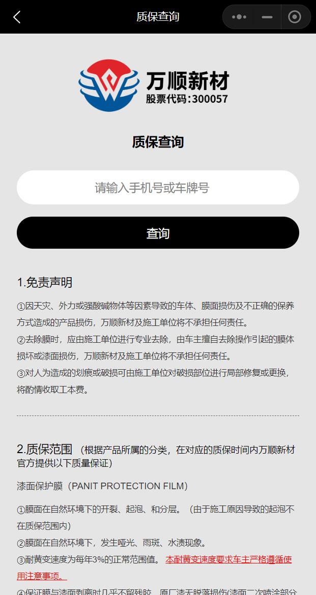如果说贴膜店不给开质保,或者不提供质保,那么万顺新材真假有待考证,万顺新材质保卡有产品型号码、编码等信息,且与膜盒子上的信息一致!